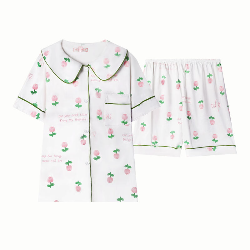 Women's Pink tulip Floral Short Sleeve Pajama Set | Ultimate Comfort Wear | FREE SHIPPING